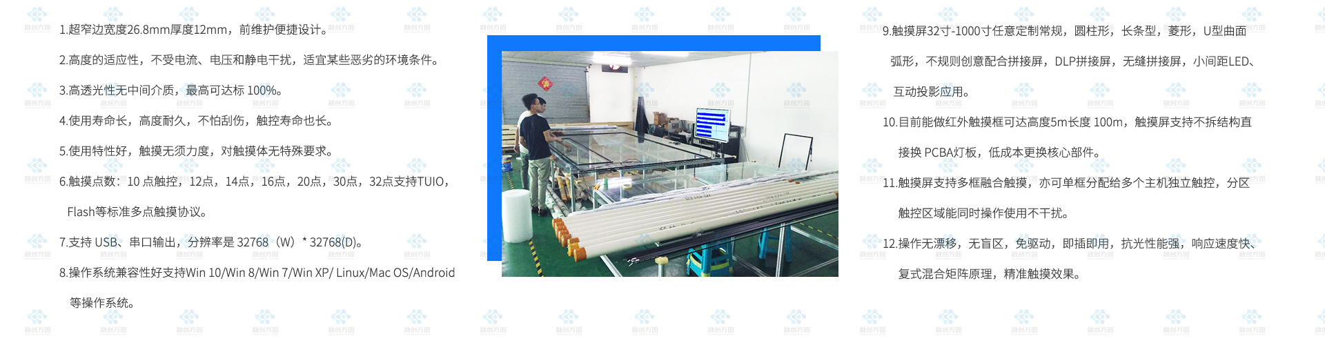 南京是江蘇省省會,是一座歷史文化名城,融創(chuàng)方圓2×4大尺寸紅外多點觸摸屏坐落這座城市,這套紅外觸摸屏對角線有199寸超大尺寸紅外觸控屏結(jié)合8臺拼接屏...